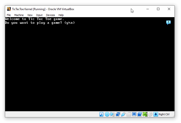 Tic Tac Toe Kernel easy gameplay running on Oracle VM VirtualBox
