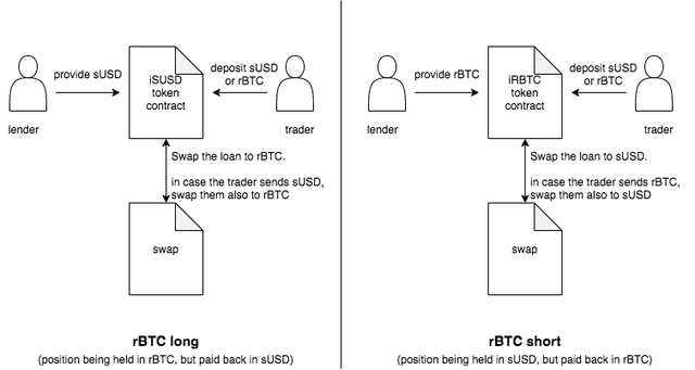 Borrowing works similar to a trade. The user takes a loan from the loanToken contract, which tells the protocol to swap it to the currency of the collateral. The borrowed amount is paid out to the user instead of being held by the protocol. Therefore, each loan needs to be overcollateralized.