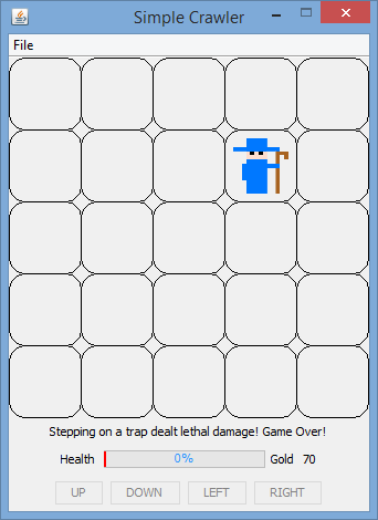 A tiny dungeon crawler that puts the player in a 5x5 grid to explore what's hiding in the rooms.