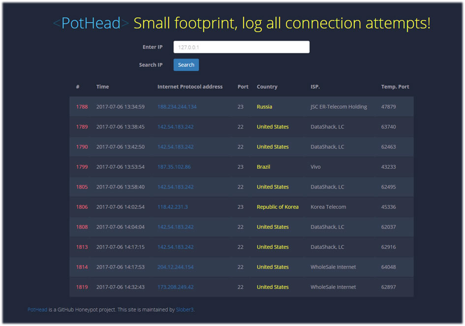 Pothead: A simple lightweight packet for creating a minimal interaction honeypot