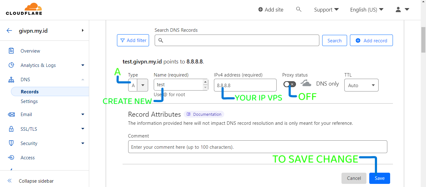 Cloudflare settings for those who have their own Domain, you can check at folder image to display other settings