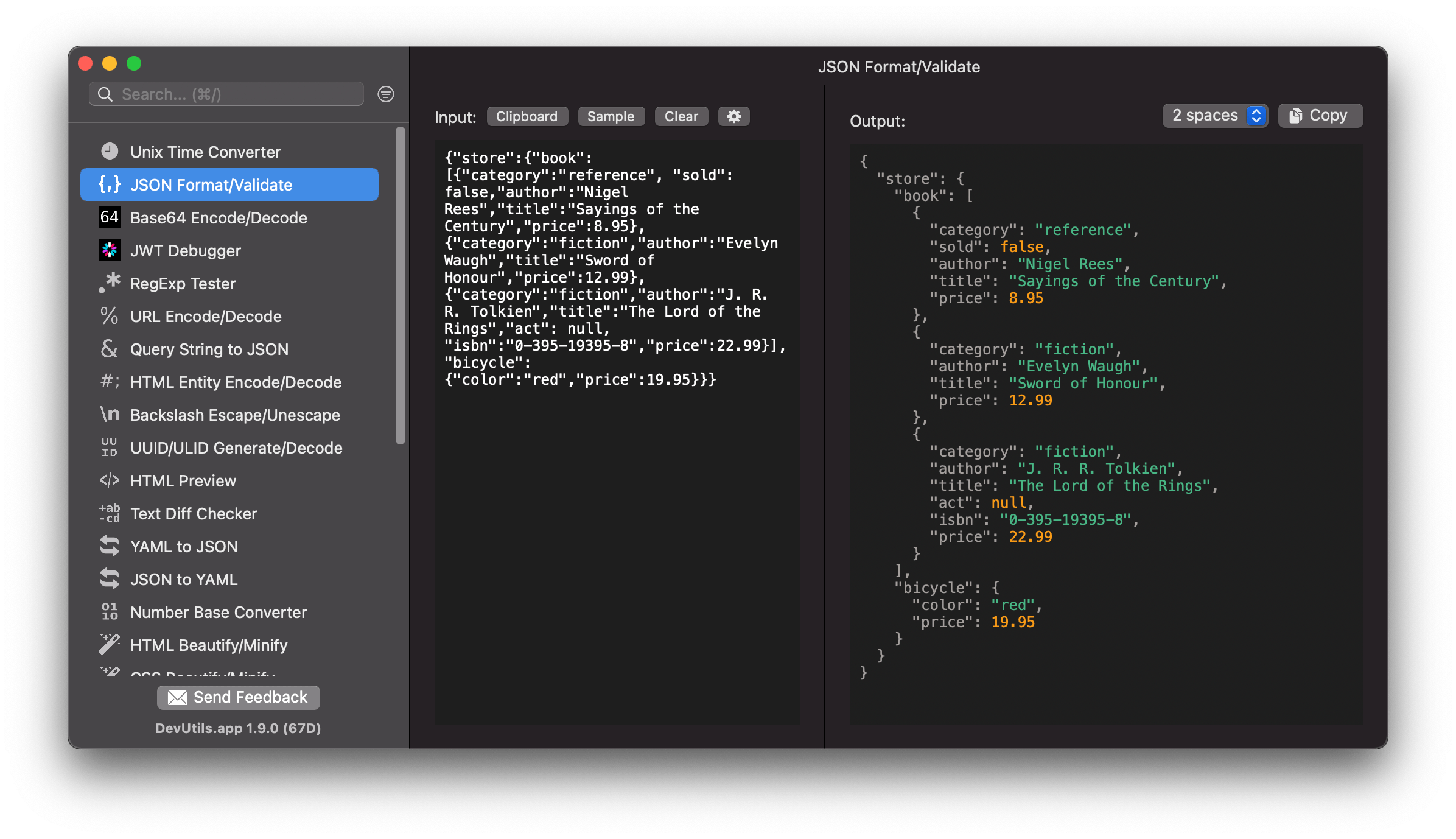 Format/Validate JSON, encode/decode Base64, convert timestamps, debug JWT… with just one click! Native macOS app and works offline.