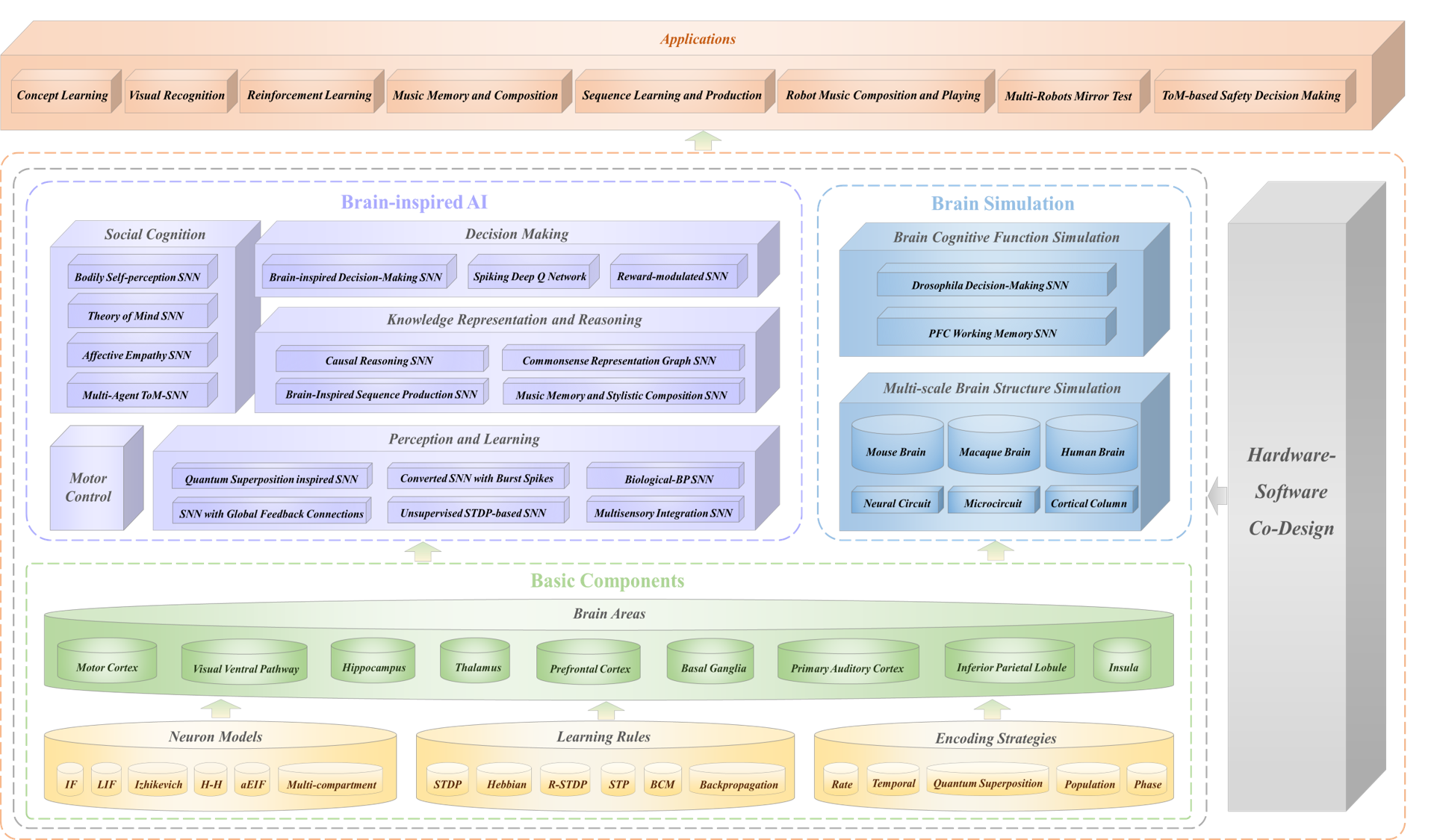 Yi Zeng, Dongcheng Zhao, Feifei Zhao, Guobin Shen, Yiting Dong, Enmeng Lu, Qian Zhang, Yinqian Sun, Qian Liang, Yuxuan Zhao, Zhuoya Zhao, Hongjian Fang, Yuwei Wang, Yang Li, Xin Liu, Chengcheng Du, Qingqun Kong, Zizhe Ruan, Weida Bi. braincog: A Spiking Neural Network based Brain-inspired Cognitive Intelligence Engine for Brain-inspired AI and Brain Simulation. arXiv:2207.08533, 2022. https://arxiv.org/abs/2207.08533