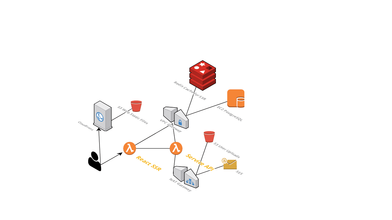 This service heavily relies on AWS Lambda. Its server side rendering function and every service API are hosted on AWS Lambda.