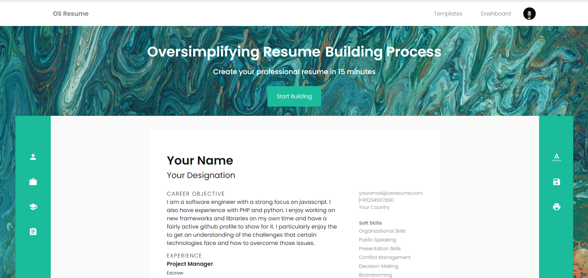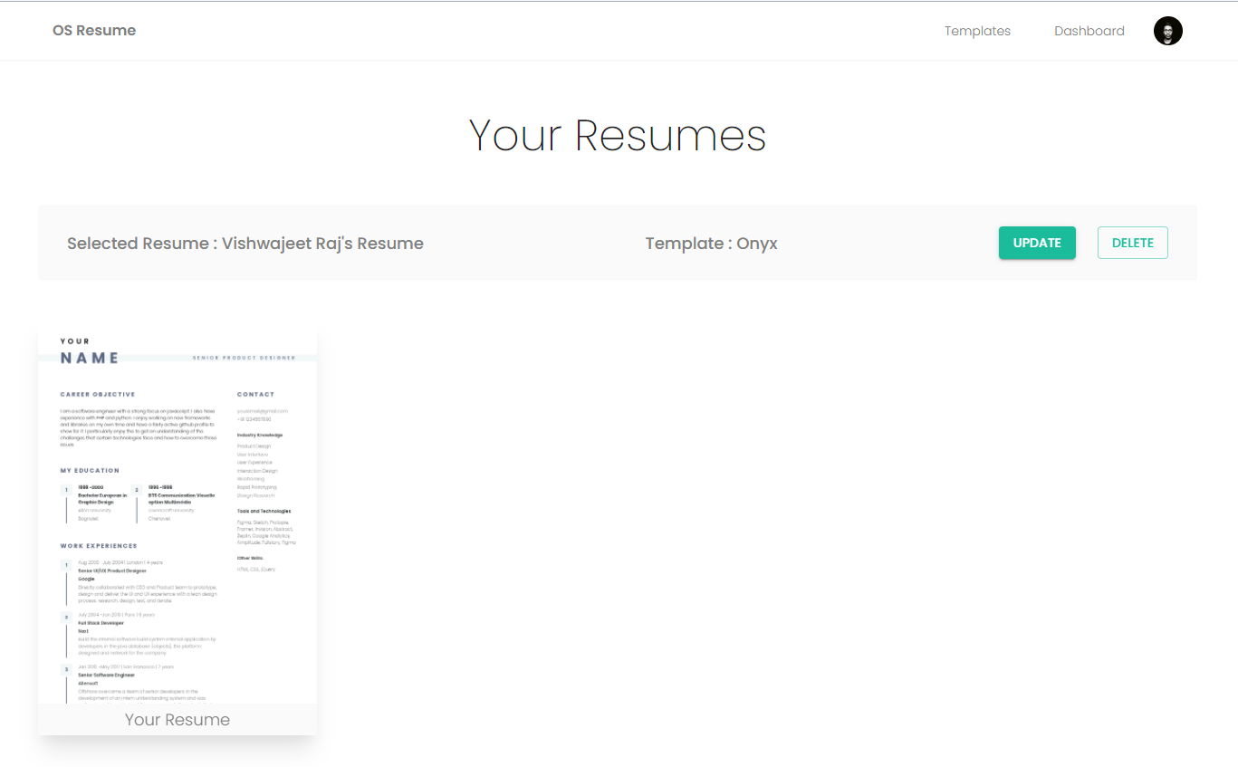 The resume builder features include a user-friendly interface built with Material UI, intuitive drag-and-drop functionality to rearrange information easily, and robust form handling capabilities powered by Formik and Yup. Additionally, users can customize their resumes with any Google Font, giving them the ability to personalize the appearance of their information even further.
