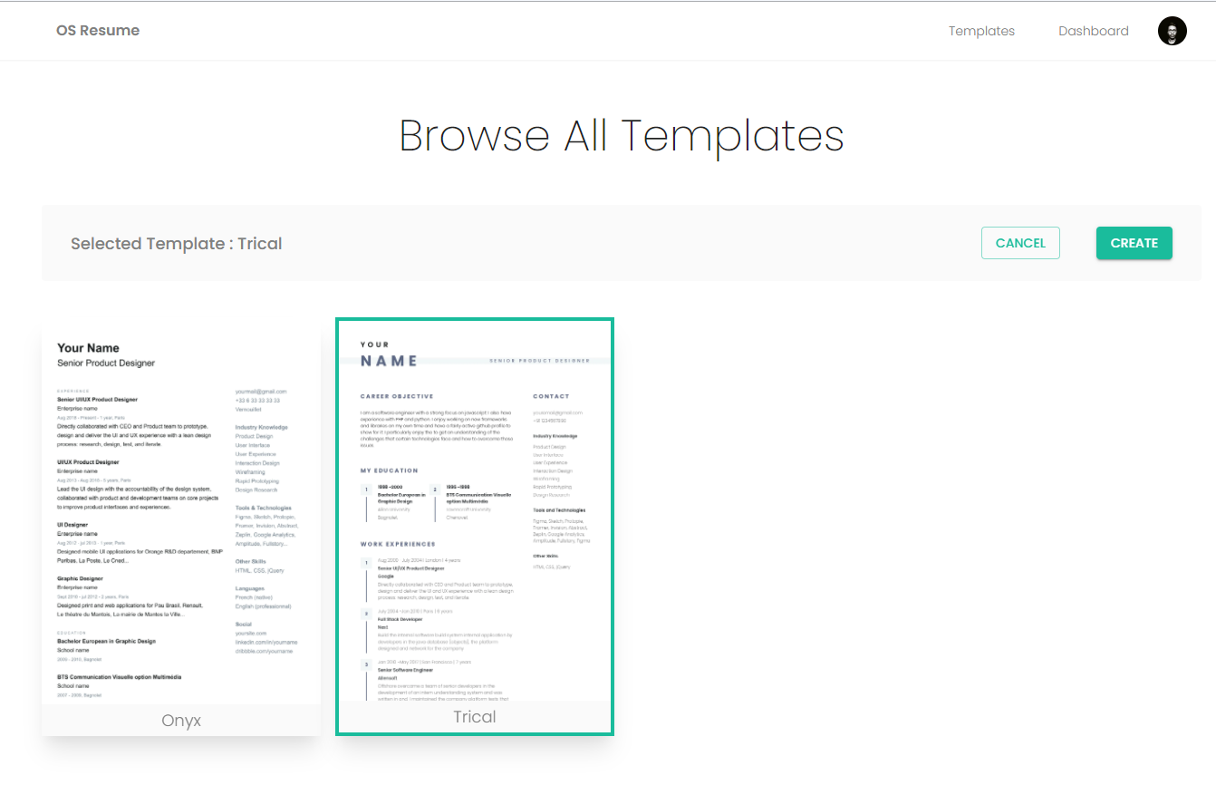 | Resume Editor (Form Updata/Create Resume Fields) | Resume Editor (Google Fonts) |